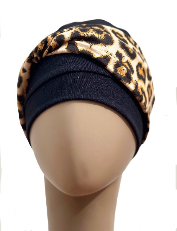 Es un gorro de tela simple que tiene incorporada una bandana que aporta volumen extra a la cabeza.