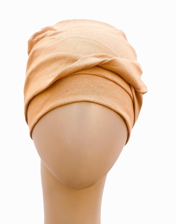 El turbante Alma de Lino es un gorro básico confeccionado en lino negro de alta calidad.
