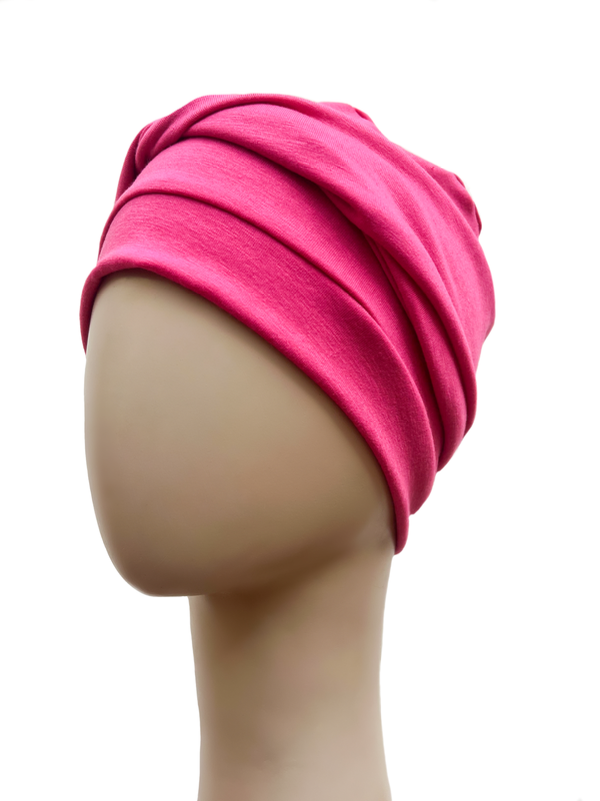 El turbante ALMA está confeccionando en modal de algodón/algodón y viscosa.
