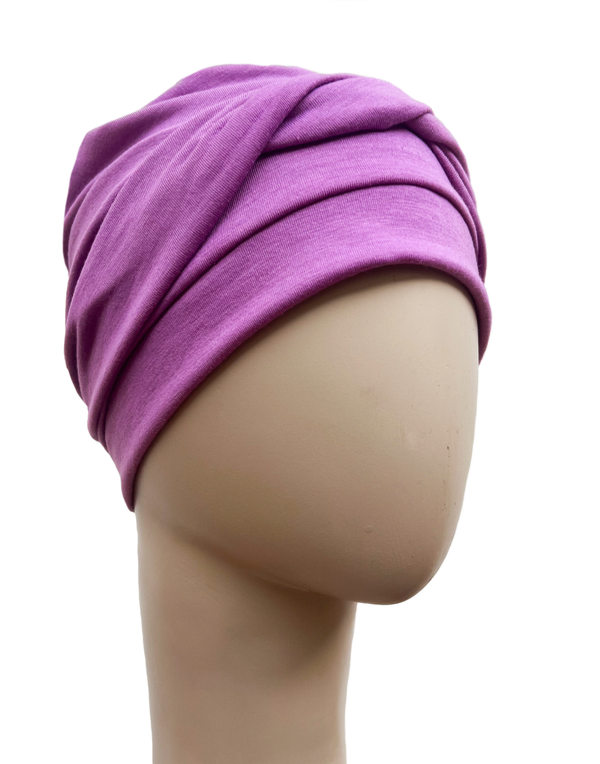 El turbante ALMA está confeccionando en modal de algodón/algodón y viscosa.