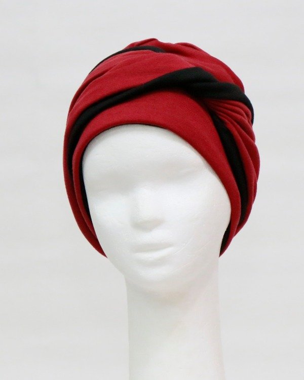 Es un turbante reversible, el gorro base no posse costuras a la vista y su versatilidad nos permite usarlo de diferentes formas y renovar el look todos los días.