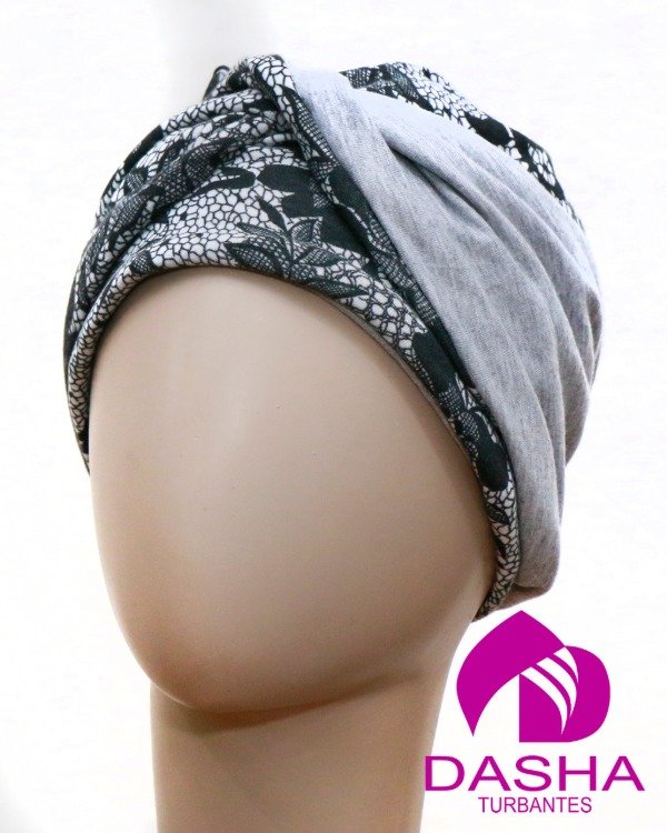 Es un turbante reversible, el gorro base no posse costuras a la vista y su versatilidad nos permite usarlo de diferentes formas y renovar el look todos los días.