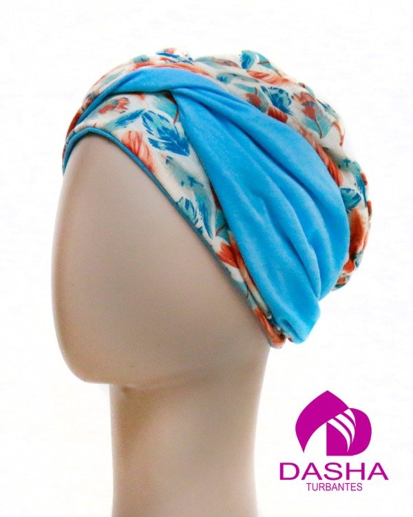 Es un turbante reversible, el gorro base no posse costuras a la vista y su versatilidad nos permite usarlo de diferentes formas y renovar el look todos los días.