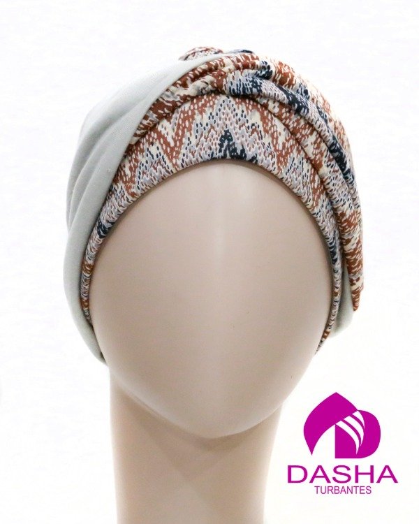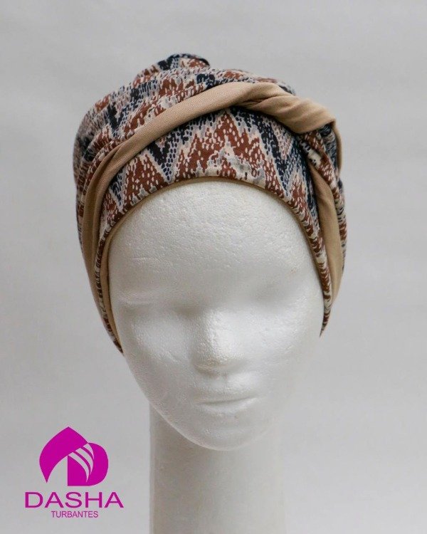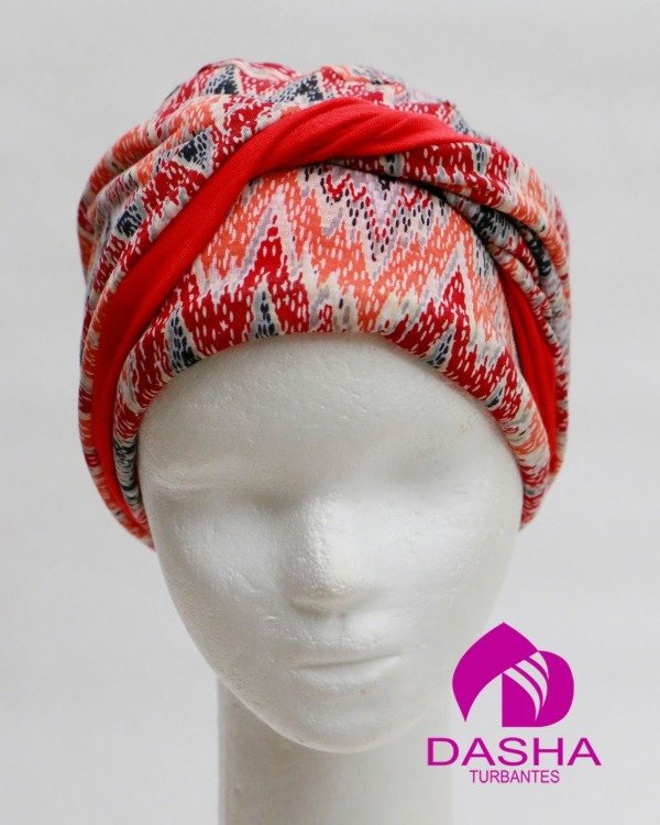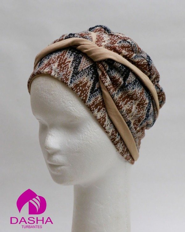 Es un turbante reversible, el gorro base no posse costuras a la vista y su versatilidad nos permite usarlo de diferentes formas y renovar el look todos los días.