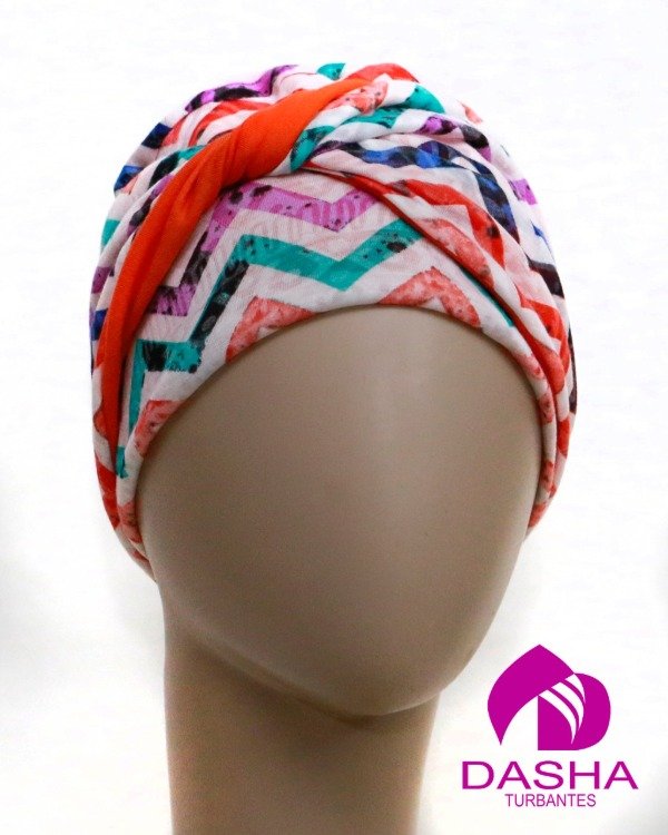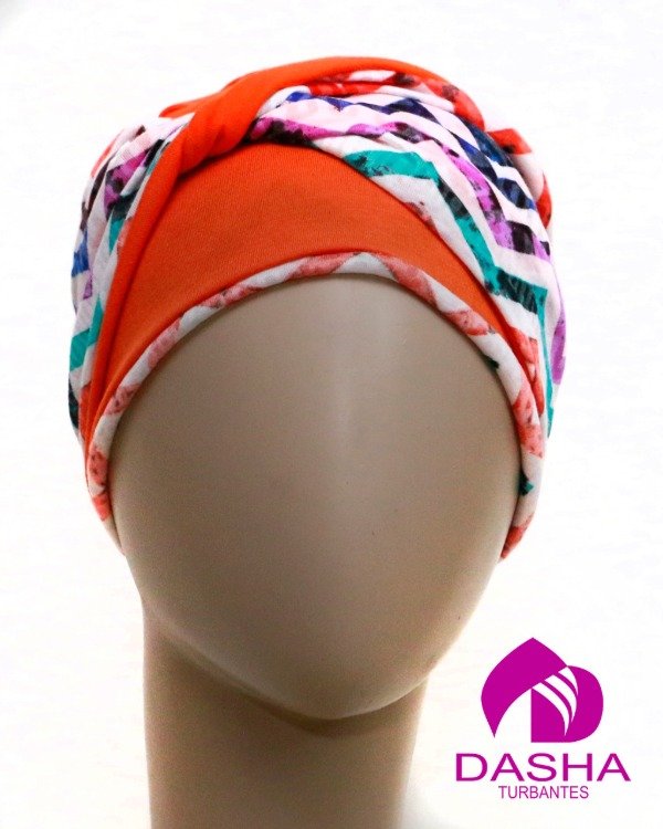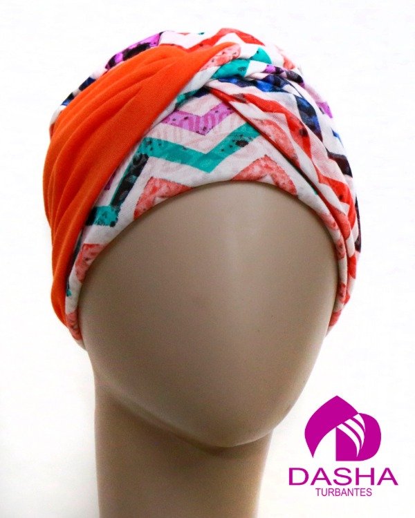 Es un turbante reversible, el gorro base no posse costuras a la vista y su versatilidad nos permite usarlo de diferentes formas y renovar el look todos los días.
