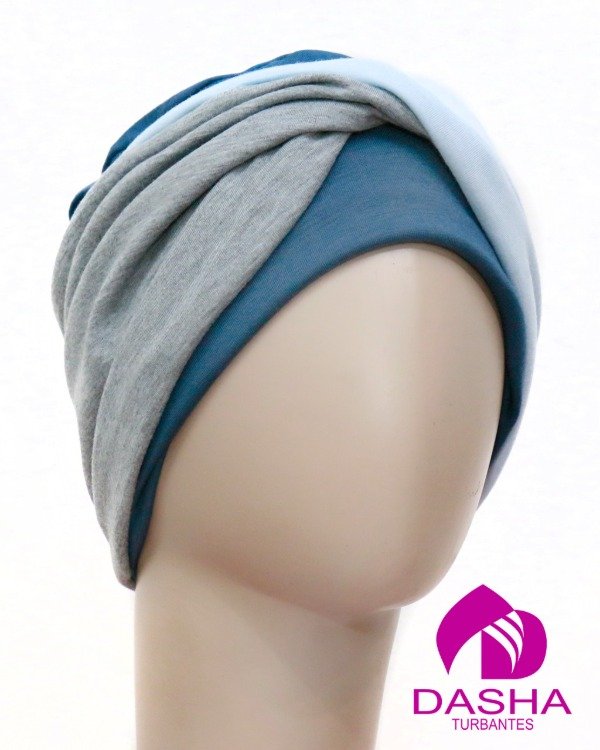 Turbante Maui aero, gris melange y celeste